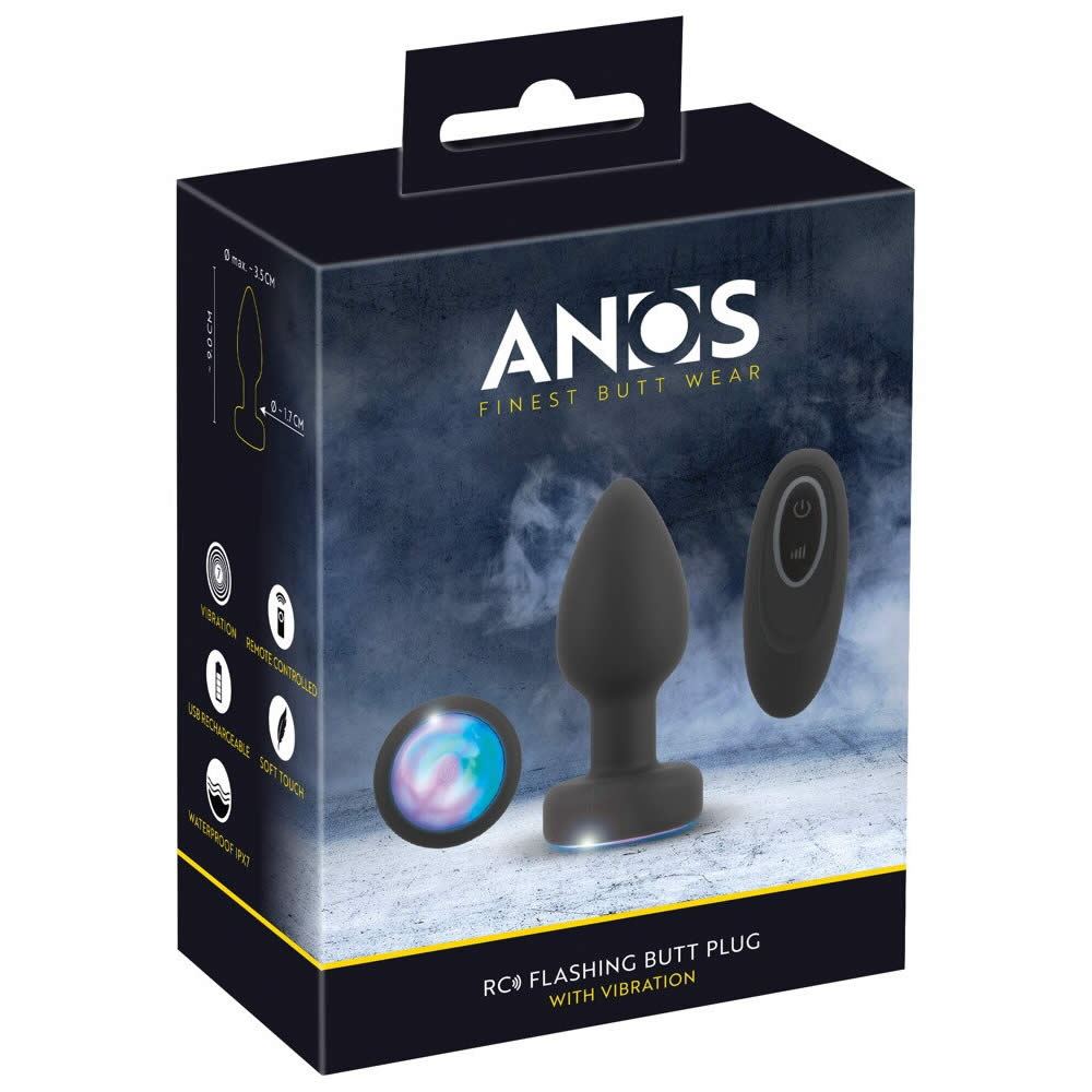 Gør din anal leg endnu mere levende med ANOS fjernbetjent anal plug med vibrator og blinkende lys. Denne unikke plug kombinerer kraftige vibrationer, en ergonomisk tilspidset form og psykedeliske LED-lys, der skaber en legesyg og stimulerende oplevelse – både for nybegyndere og erfarne.
