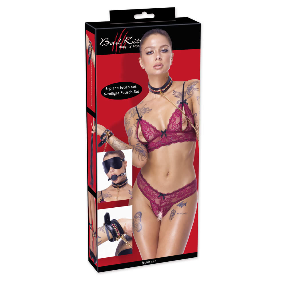 Bad Kitty Bondage Sæt med Rød og Guld – 6 Elegante Dele