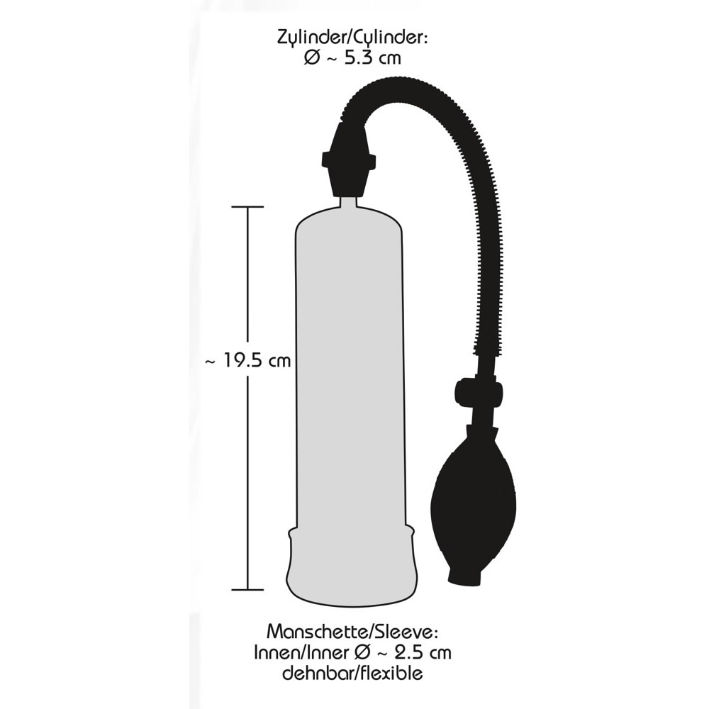 Pumpen virker ved at du fører den ned over penis. Vi anbefaler at du anvendes lidt glidecreme, så føles det langt bedre. Når cylinderen er ført ned over og sidder godt, begynder du at pumpe. Pumpen i toppen er nem at bruge og ligger godt i hånden. For enden af pumpen er en lille ventil, hvis du får pumpet for meget tryk i.