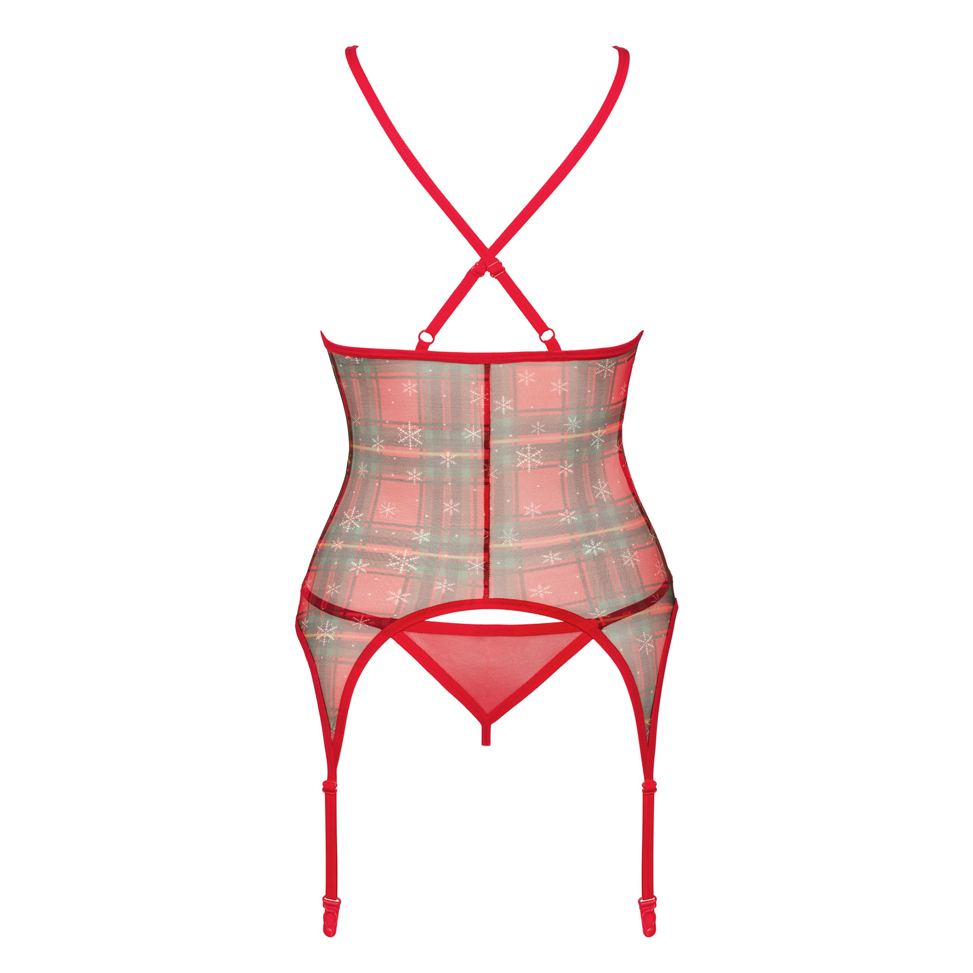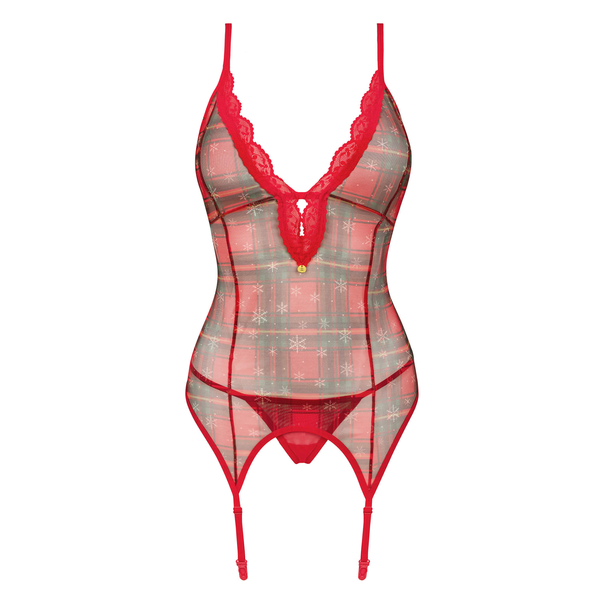 Jollymore lingeri sæt i rød og grøn, består af ternet hofteholder bustier & trusse sæt – en festlig forførelse