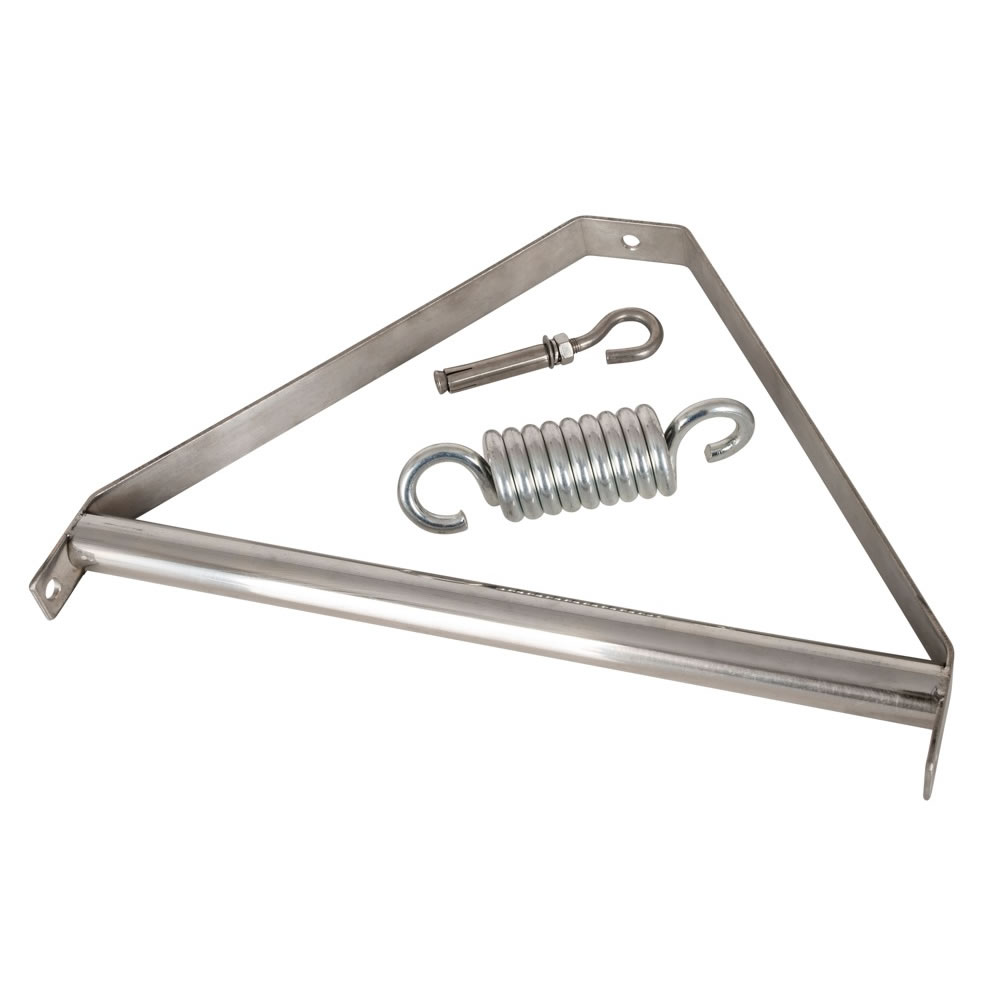 Alle bånd samles med stærke metalringe i et beslag i toppen af stærk stål. Dertil kommer at den hænges op i en fjeder, der også giver bedre komfort. Der følger også en krog med, du kan skrue op i loftet. Det hele er udført i ekstra stærk kvalitet. Normalt bærer en gynge en 100 – 120 kg, hvilket gør at den for nogen mænd ikke er sikker. Denne gynge kan dog med bæreevne på 180 kg bruges sikkert af både hende og ham.