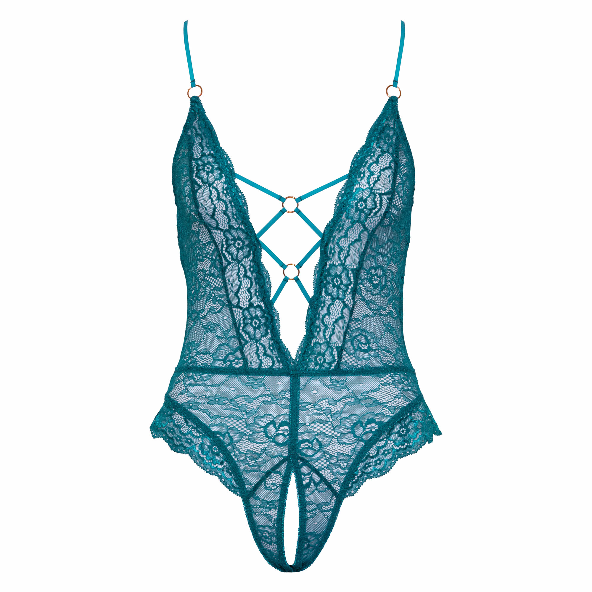 Grøn blonde body med dyb udskæring til de dage hvor sort bare er for kedelig. Dertil kommer at den er bundløs og perfekt til de frække øjeblikke.