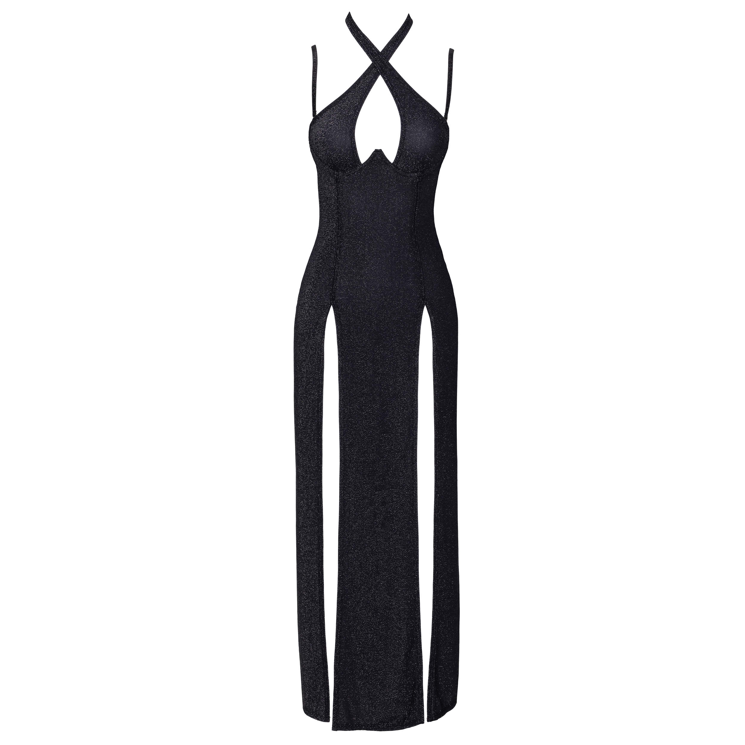Oplev sølvglamour med sex appeal i denne eksklusive lange sorte kjole, der forener sofistikation, glimmer og forførende stil til et uforglemmeligt look.