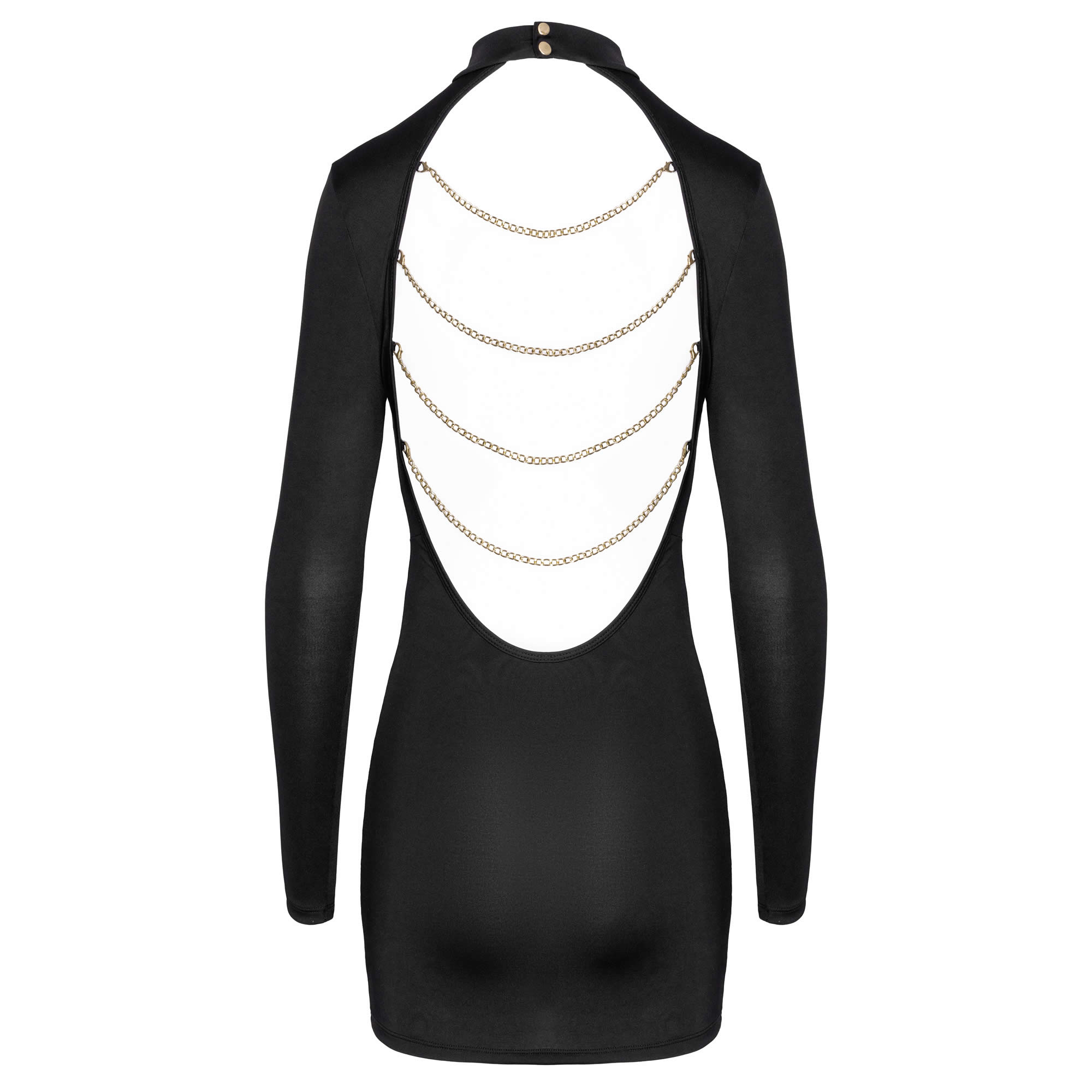 Langærmet Rygløs Mini Kjole i Sort med Pyntekæder – Elegance Møder Forførelse