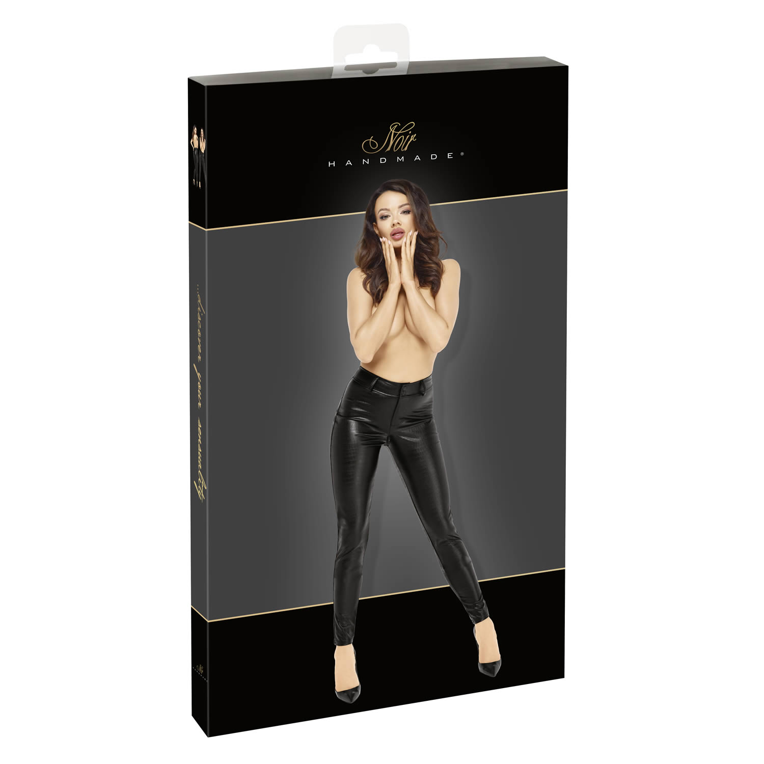 Disse elastiske slim fit wetlook bukser i et skinnende slangeskinds mønster sidder blødt og behageligt som en anden hud. Stylingen med trykknap- og lynlåslukning, bæltestropper og baglommer gør bukserne til en trendy allrounder til hverdags- og klubbrug.