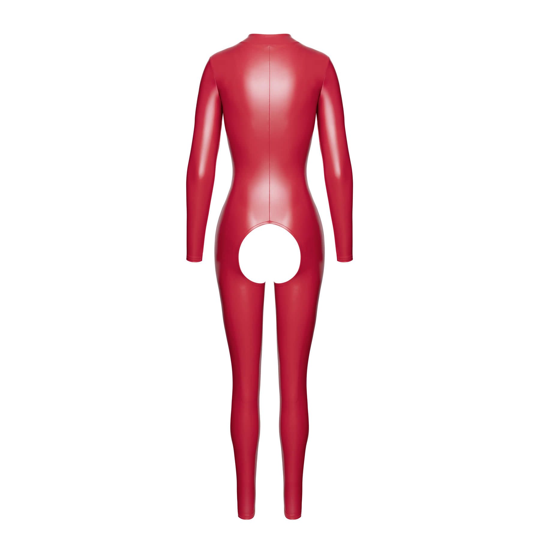 Noir Wetlook Jumpsuit i Rød med Åben Bund – Dristig, Forførende Stil