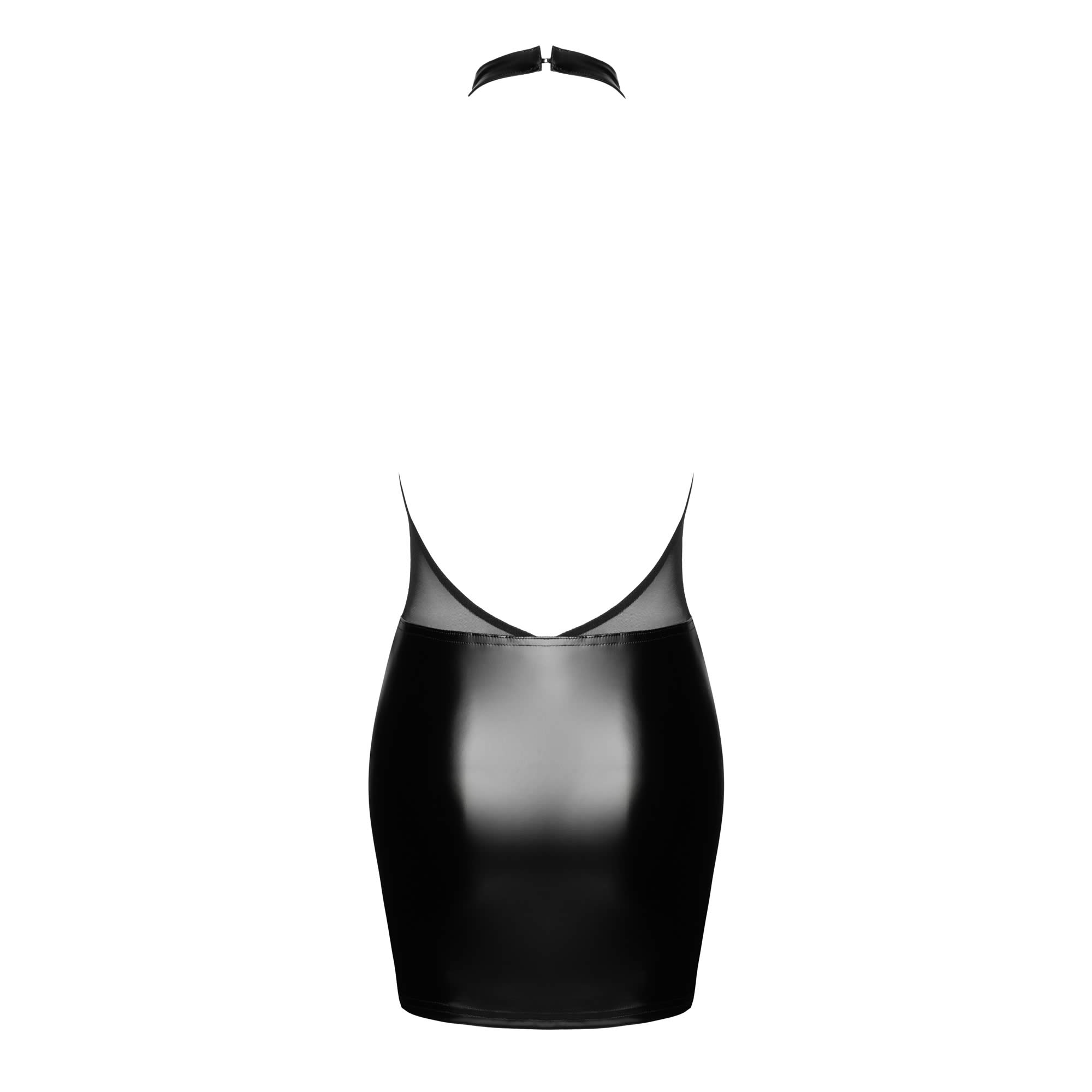 På trods af sit provokerende design er Noir Wetlook Kjole skabt med fokus på komfort og fleksibilitet. Både powermesh-toppen og power wetlook-nederdelen er bløde og elastiske, hvilket sikrer en tæt, men behagelig pasform, der bevæger sig med kroppen. Den stående halterneck-krave med knaplukning tilføjer et elegant touch og holder kjolen på plads.