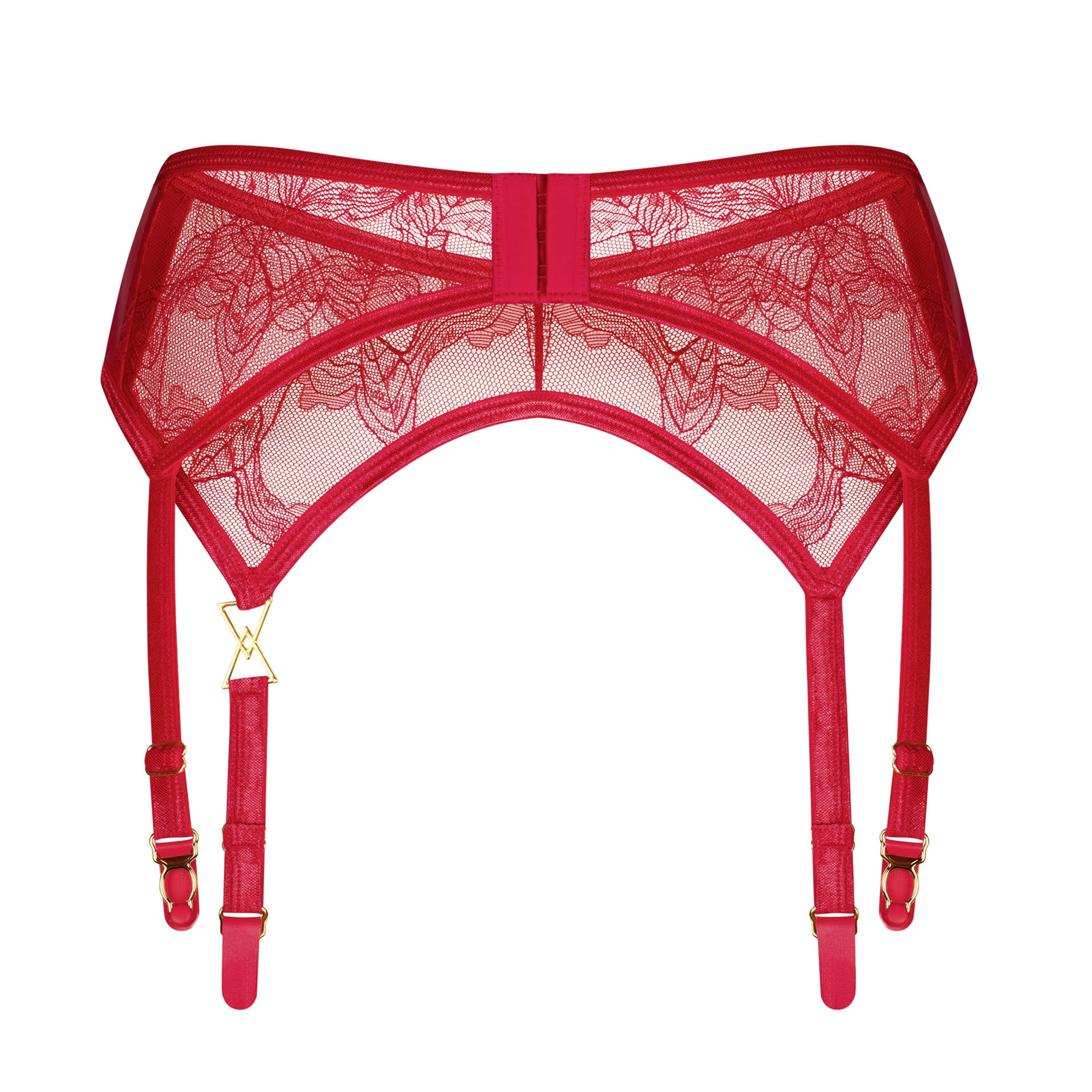 Aliosa-hofteholderen er fremstillet af blødt, strækbart blomsterblonde i en dyb, forførende rød farve. Det intrikate blondemønster tilføjer en romantisk elegance. Alt imens den glatte, skinnende finish giver et luksuriøst udtryk. Et diskret guldfarvet dekorativt element på linningen og den ene strømpeholderstrop tilføjer et raffineret, glamourøst touch, som gør hofteholderen visuelt iøjnefaldende uden at overvælde det delikate design.