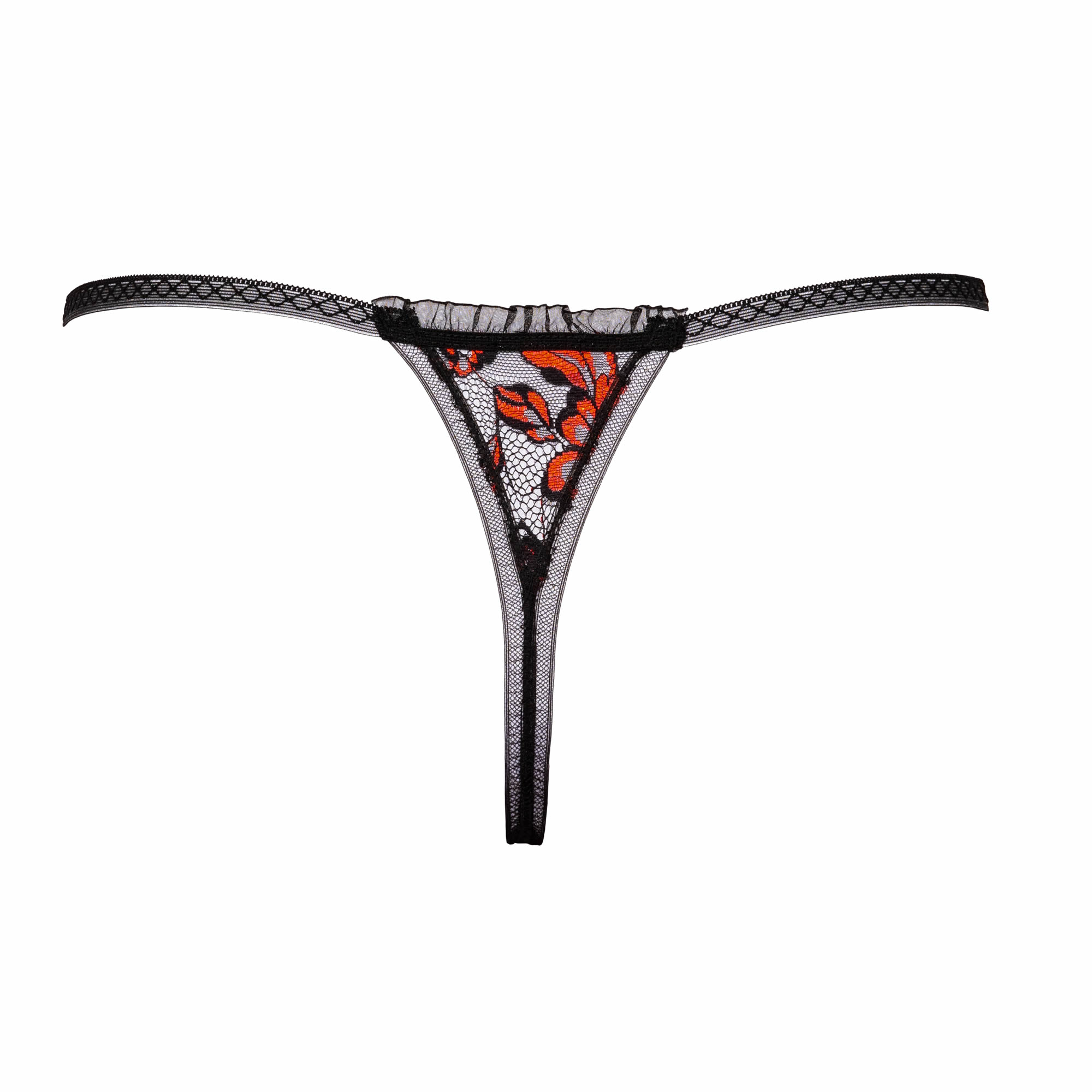 Trusserne er lavet af et smukt og filigran blonde materiale, i en kombination af sort og rød. Det er dog ikke kun romantik og elegance de udstrålet. De har nemlig en lille kæde med perler på som går gennem skridtet. Denne kæde sørger for en lækker og pirrende fornemmelse når du har dem på. Det smarte er specielt ved dem, at den kan tages af. Der sidder en lille karabinhage på kæden. Dermed kan den klikkes af og på efter ønske.