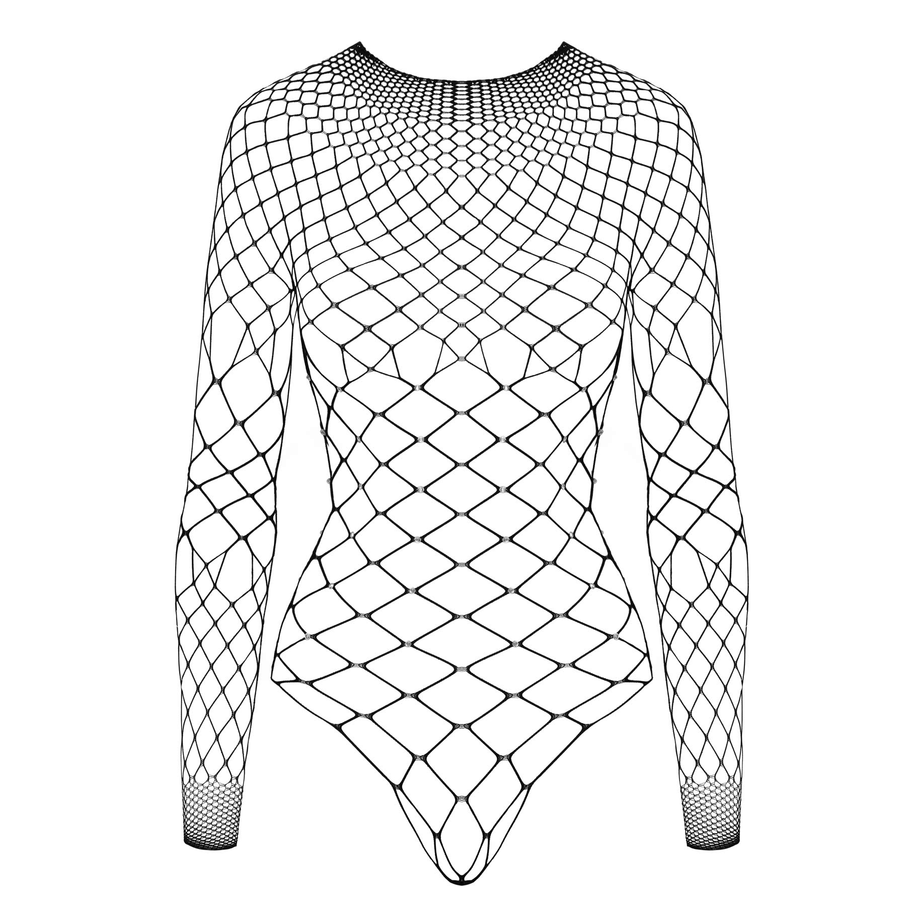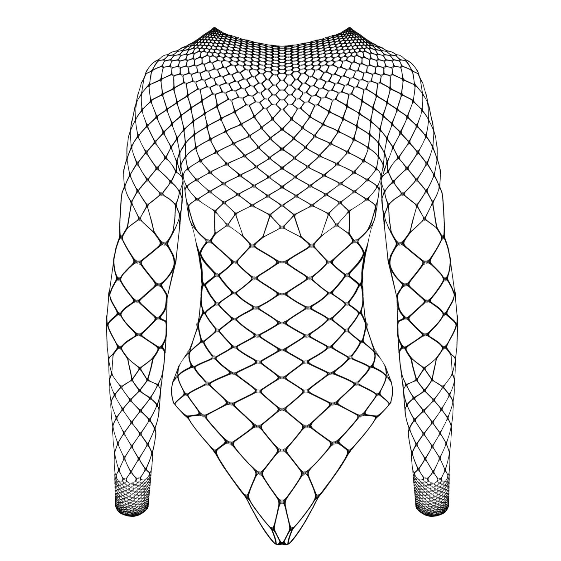 Opgrader din forførende garderobe med denne fantastiske stormaskede netbody. Designet til at tiltrække opmærksomhed og vække fantasien, kombinerer dette stykke dristig eksponering med elegant glans. De lange ærmer og de forskellige net strukturer skaber et visuelt imponerende look, mens de strategisk placerede smykkesten tilfører glamour til dine kurver. Perfekt til intime aftener, særlige lejligheder eller bare til øjeblikke, hvor du vil føle dig uimodståelig.