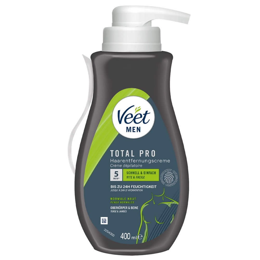 Få en hurtigere, glattere og mere behagelig plejerutine med Veet Men TOTAL PRO Hårfjerningscreme. Ideel til travle mænd, der ønsker professionelle resultater hjemme, så huden forbliver blød, glat og velplejet med minimal indsats.