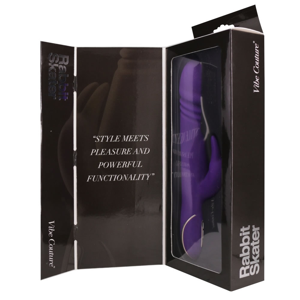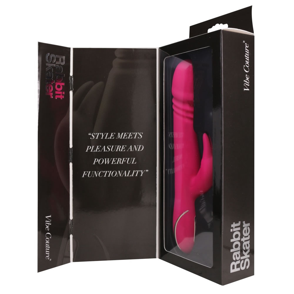 Vibe Couture Rabbit Skater er en realistisk udformet vibrator med silkeblød silikoneoverflade. Den har et naturlig udformet penis hoved med stimulerende riller nedenunder. På skaftet sidder den lille rabbit vibrator der giver klitoris en lækker massage.