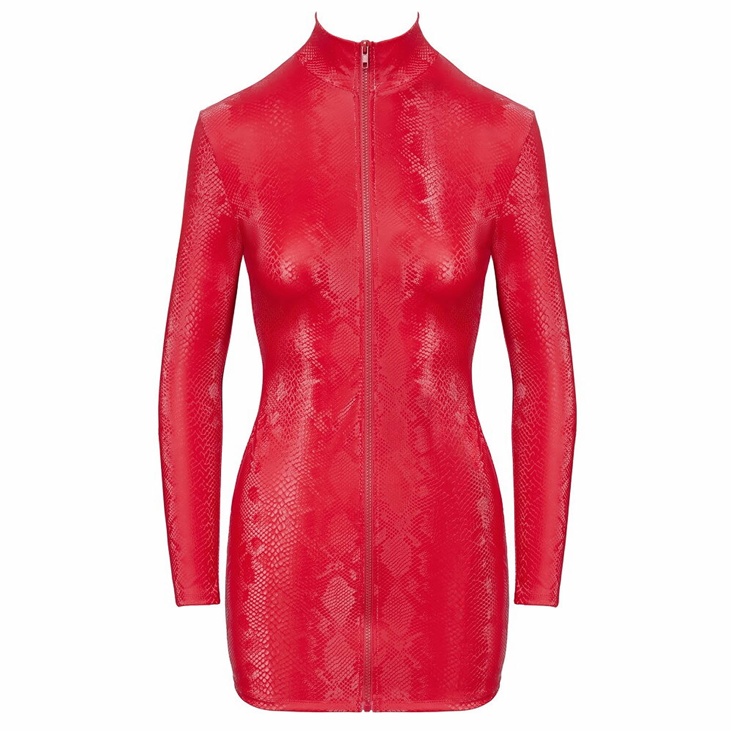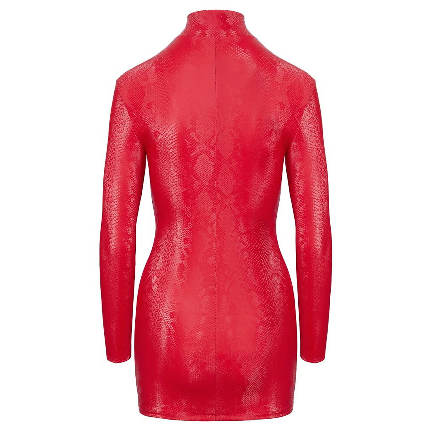 Forkæl dig selv med denne langærmede wetlook kjole, designet med en ultrakort længde og et trendy snake skin look i hot rød, der tiltrækker opmærksomhed. Denne kjole er perfekt til modebevidste kvinder, der ønsker at fremhæve deres kurver og gøre et uforglemmeligt indtryk.